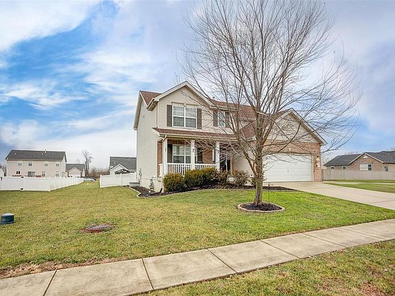 Welcome home to 3536 Barton Dr. in Shiloh, IL. This beautiful 2-story home is in the Eagles Landing subdivision, which features a neighborhood pool with your HOA just two blocks away. Main floor features include a formal dining room, living room w/gas fireplace, large eat-in kitchen with plenty of cabinet space, walk-in pantry, stainless steel appliances, smart fridge with front touchscreen, laminate flooring, butcher block center island, 1/2 bath, and main floor laundry. Upper level features 3 bedrooms plus a spacious main bedroom with vaulted ceilings, full main bathroom with double vanity sinks, a separate tub/shower and a large walk-in closet w/built with LED lights and a large mirror featuring a hidden safe inside. Lower level features a 5th bedroom, family rec room, and a half bath. Vinyl fencing (2023), newer roof (approx. 2021), playset is included. Close to shopping, I-64 and approx—15 minutes to Scott AFB gate off of 158. Don't miss your chance to call this house HOME!