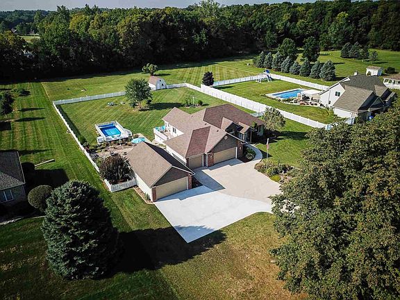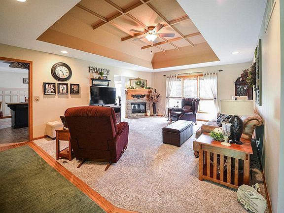 Very well maintained, 1 owner home in Franklin Place subdivision! This 4 bed 3 bath beauty is nestled on a quiet street with a tree line for added privacy in the back yard. Step inside & admire the tray ceilings, hardwood floors & spacious living area. A double sided fire place is the beautiful center piece in the family & dining room! You'll fall in love with the large kitchen & WALK-IN pantry (yes, a dream come true) Start your mornings off enjoying a cup of coffee in the sunroom overlooking your large back yard & the stunning landscape. Summer evenings are spent relaxing out on the oversized patio & covered porch following an afternoon in the pool! Finished basement offers plenty of additional living space for relax & play. 3 car attached garage & 2 car detached allow for plenty of extra storage or working on projects. This gem has been well cared for over the years & is ready to welcome its new owner!