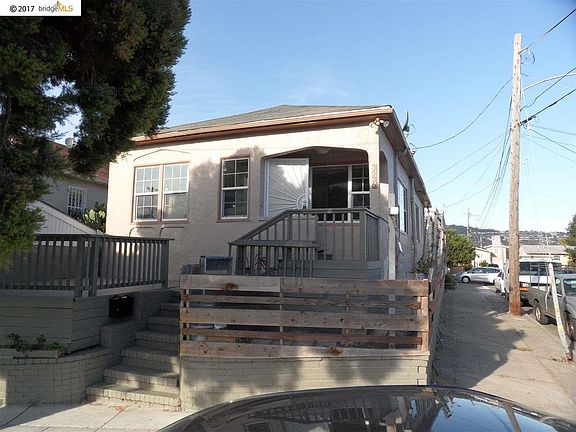 Great starter home on a corner lot with tons of natural light throughout the day! Sunny kitchen with granite counter tops and beautiful tile, two good sized bedrooms and a bathroom in between. Front deck large enough to entertain on, nice vintage built-ins in the dining area, and spacious layout. Front yard has place for planter boxes! This is move-in ready in a friendly and diverse Oakland neighborhood, close to schools, shops, parks. Less than a mile to Fruitvale BART and easily accessible off both the 580 and 880! Also, great income potential as a rental property!