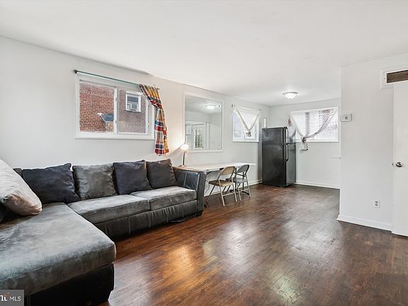 Brick corner row house, with 2 bedrooms and 2 full bathrooms. finished basement with rear entrance and full bath. ample driveway, shed, wood floor.