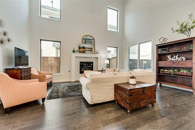 MULTIPLE OFFERS: OFFERS DUE BY 5:00PM APRIL 26. Skip the waiting list - move into this amazing Shaddock Home in the highly desired resort style community of Light Farms! From the elegant curb appeal to the soaring ceilings inside you will notice the custom features throughout! Upgrades include a gourmet kitchen with a huge island, premium quartz countertops, shaker style cabinets, a 5 burner gas cooktop, hardwood flooring, designer carpet, and a two story family room with sliding doors to the extended covered patio. Best of all this home is conveniently located within walking distance to the onsite PROSPER ISD school, barnyard, restaurant, amenities area that includes a gym, playground, 5 pools, tennis courts!