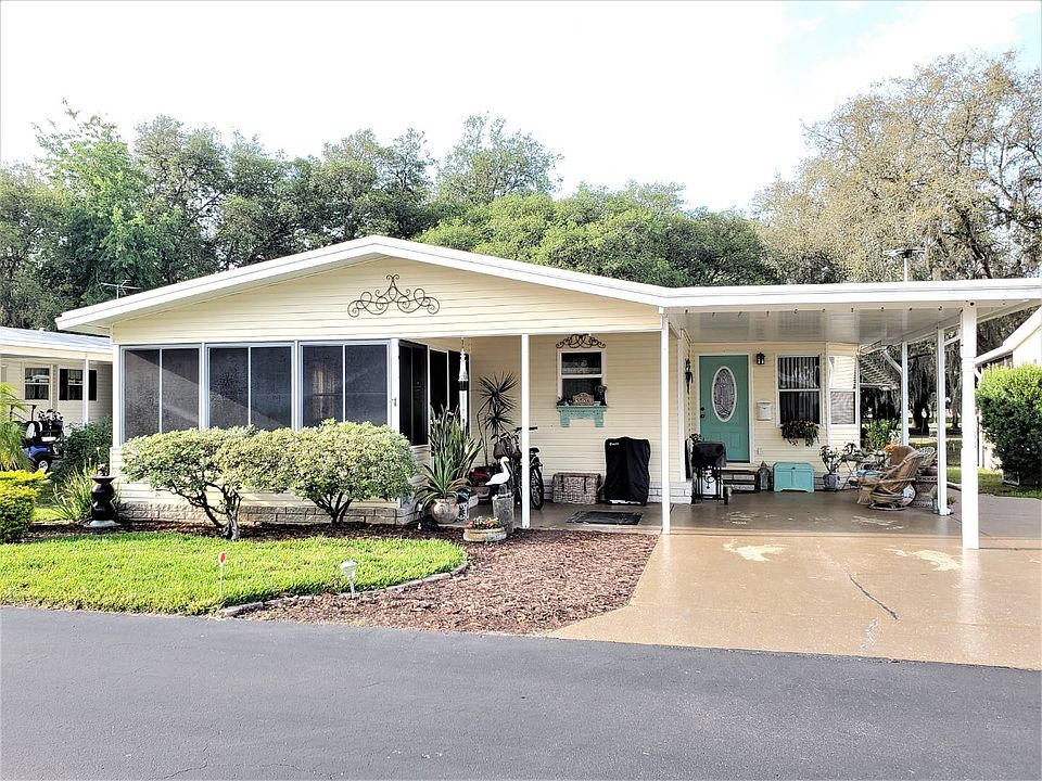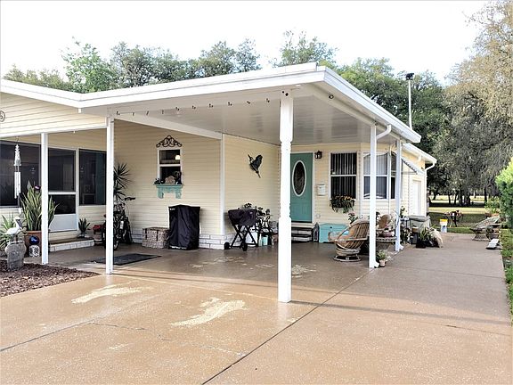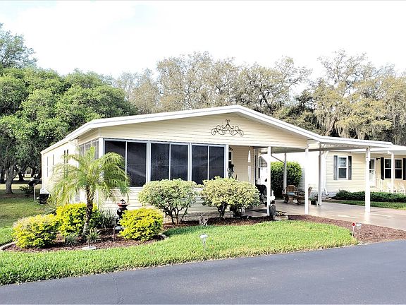 WOW! SHOWSTOPPER 2017 RENOVATIONS! SHINGLE AND MEMBRANE ROOF! AC AND DUCTWORK! KITCHEN PREMIUM CABINETS AND STAINLESS STEEL APPLIANCES! GRANITE COUNTERS IN KITCHEN AND MAIN BATH! VINYL PLANK FLOORING! NEW HIGH-END TOILETS! LIGHT AND FAN FIXTURES! OUTLETS AND SWITCHES! 40 GALLON WATER HEATER! BATH VANITIES SINKS AND FAUCETS! INTERIOR DOORS, HARDWARE, CASINGS, 8 WINDOWS! 1988, good-as-new, 1257 sqft home plus Florida room on golf course lot. Crown molding throughout! Furnishings are negotiable. This home is on LEASED LAND with a monthly lot rent of $852.00 in the PREMIER Southport Springs Golf and Country Club community (55+ and pet-friendly). LIVING ROOM (13'9" X 17'6) Good-size living room with vinyl plank flooring and a lighted ceiling fan. Curtains remain. KITCHEN Beautiful granite counters and premium cabinets (all soft close doors). Pantry shelves fully extend. Vinyl plank flooring, and subway tile backsplash. Stainless steel appliances includes Thor Kitchen French door refrigerator, Kenmore smooth-top stove, Thor Kitchen dishwasher, built-in Kenmore microwave and large farm sink with high-end faucet. There is a Lazy-Susan and a pull out trash rack.DINING ROOM (8'4" x 9') Open to the kitchen and living room there is plenty of space for a table and chairs. More vinyl plank flooring and a decorative hanging light plus a large built-in hutch. OFFICE/DEN (9'6" x 11'3") Large informal space off the kitchen/dining area. Vinyl plank flooring and vertical blinds. MAIN BEDROOM (13' x 15') King-size bedroom with ceiling fan and vinyl plank flooring. Large, cedar-plank lined, walk-in closet. MAIN BATH Spacious bathroom with a vinyl plank floor, a wide, granite L-shaped counter, double-sink vanity with built-in make-up area and premium cabinets. Walk-in shower, high-end toilet and linen closet complete this bathroom. GUEST BEDROOM (11'4" x 11'5") A queen-size bed and furniture will easily fit. The floor is covered with high-end and there is an accent wall with white-washed barn wood, shiplap planking. The wall closet provides plenty of room for storage. GUEST BATHROOM Full bath has the same vinyl plank flooring, a single-sink vanity and a high-end toilet. The tub/shower is full-size. LAUNDRY Located with-in the guest bathroom you will find the Maytag washer and dryer. There is a rod and a storage shelf above. The floor is vinyl planking. FLORIDA ROOM (11' x 14'6") Sit and relax in your shaded, Florida room at the front of the house. Has nice indoor/outdoor carpeting and a lighted ceiling fan. There is a portable AC unit to keep this vinyl windowed space cool. GOLF-CART SHED (10' x 13'8") Has a golf cart-size garage door at the end of the concrete lane that runs down the driveway-side of the home. EXTERIOR The home is vinyl sided. The asphalt, 25-year dimensional shingle roof and membrane roof were new in 2017. There is a 10' x 11' covered, concrete patio between the carport and the Florida room. '17 Bryant HVAC unit and ductwork under the home. Southport Springs Golf and Country Club is the premier 55+ manufactured home community in Zephyrhills. Lot rent for this home is $852.00 per month plus pass-on tax of $55.84 per month and a monthly trash pick-up fee of $12.18. All listing information is deemed reliable but not guaranteed and should be independently verified through personal inspection by appropriate professionals. American Mobile Home Sales of Tampa Bay, Inc. cannot guarantee or warrant the accuracy of this information, measurements or condition of this property. Measurements are approximate. The buyer assumes full responsibility for obtaining all current rates of lot rent, fees, and pass-on costs. Additionally, the buyer is responsible for obtaining all rules, regulations, pet policies, etc., associated with the community, park, or home from the community/park manager. American Mobile Home Sales of Tampa Bay, Inc. is not responsible for quoting of said fees or policies.