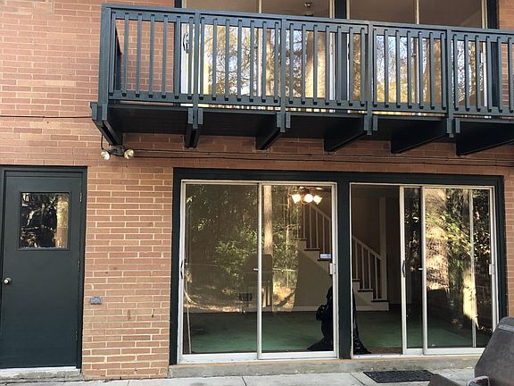 Private deck and patioWarm hardwood floorsClassic brick ranch-style homeLarge sliding glass doorsQuiet tree-lined surroundingsSprawling wooded lotSpacious split-level layout