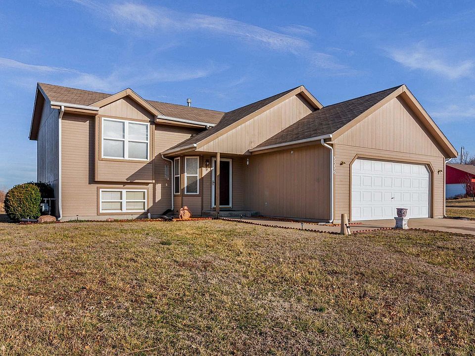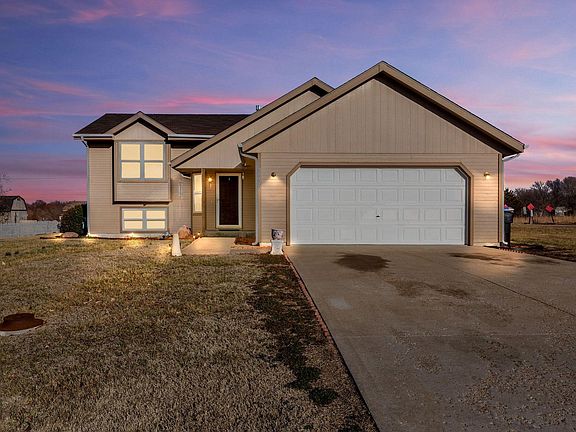 Welcome to this lovely Shawnee Heights District Home For Sale in Topeka KS. This home is located on a corner lot, with a spacious yard! Celebrate the 4th of July while enjoying the Lake Shawnee fireworks from home! Watch the morning sunrise while relaxing on the back deck. This home features an open kitchen/dining combo, spacious living room, and 2 bedrooms upstairs. The primary bedroom has a vanity, 2 closets, and connects to the full bathroom upstairs. The lower level features a bonus living room, fireplace, 1 bedroom, 1 bathroom, and storage area.