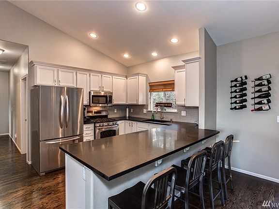Newer Southside home situated on a dead-end street w/ amazing territorial views & peek-a-boo of the bay! Kitchen updated just completed w/ granite counters, full height glass fireplace, vaulted ceilings, open floor plan, lots of natural light, private deck, & entertainment bar w/beverage fridge. Great schools & location with the Interurban trail at the bottom of the hill & easy access to I-5. Move in ready!