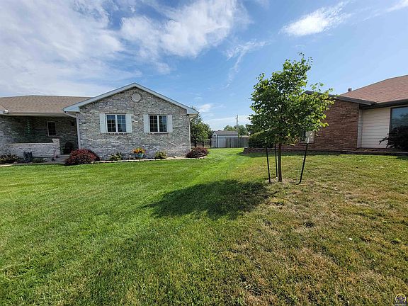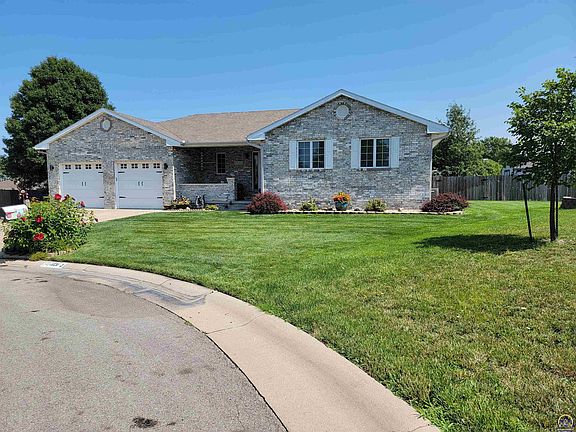 Beautifully updated Ranch home at the end of a cul-de-sac street. This brick front ranch is move in ready!!! Open and spacious layout. Living room features an electric fireplace ~ Dining area features bay window that looks out to beautifully landscaped back yard. And the kitchen.... Corian countertops, gas range with vent, most cabinets feature pull out shelves, all appliances stay. Light switches control the over cabinet lighting. Nice main floor laundry room features built in ironing board. Basement offers large family room, 2 conforming bedrooms, full bath and plenty of storage including a storm shelter. Most light switches are dimmable. This home was built by Billy Redeker. This is so worth the look!!!