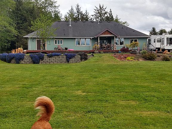 Newer country contemporary home with great decking,large yard,hot tub and rock wall fireplace.