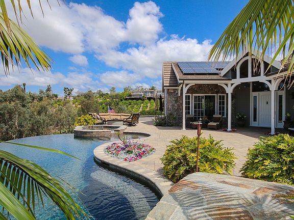 SELLER WILL ENTERTAIN OFFERS BETWEEN $1,995,000 - $2,195,000 This stunning, custom home is a MUST SEE!! Featuring timeless architecture, boasting vaulted open beam ceilings. An entertainers dream with vanishing edge pool w/ waterfall feature.Views to the west look out over your 2.5 acres of landscaped property. Organic, heirloom, non GMO grove with peaches, plums,apples, oranges, lemons and more...large raised bed vegetable garden ALL on timed irrigation. Large grass area for kids to play. For horse lovers, it's adjacent the horse trails with gated access. Plenty of room for stables/arena, zoned for up to 4 horses. RV or tailer parking. Includes solar for pool and home. Quiet country living yet close to beach and shopping.