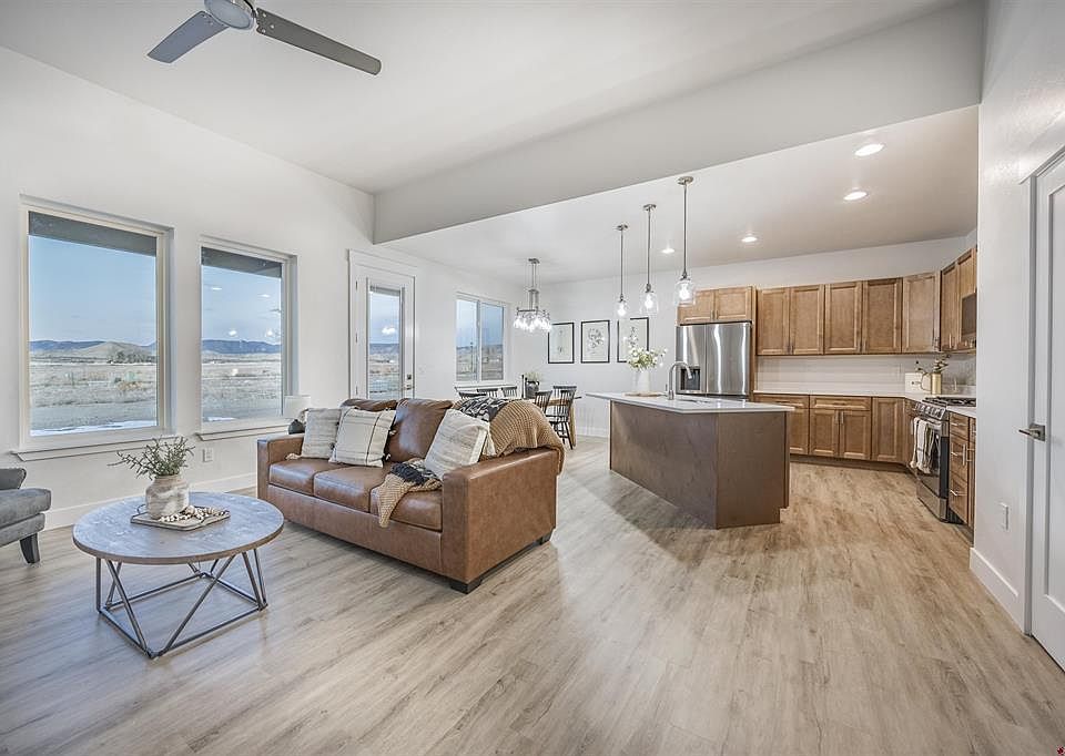 Seller offering a concession or buyer credit, with an additional amount if you use Guild Mortgage for financing! Move-in ready! This 3 bedroom, 2 1/2 bathroom Pismo Floor Plan in Woods Crossing features the finest finishes. Luxurious quartz countertops in the open concept kitchen with an island, deep under mount kitchen sink, all-included kitchen appliance package (range/oven, refrigerator, dishwasher, range hood, and sink does include a disposal) and gorgeous cabinets.This floor plan offers a functional split floor plan with spacious primary bedroom suite, walk-in closet, and a functional AND appealing main bathroom with a stunning and functional bath within shower design. Tucked behind a set of barn doors off of the entry space, you'll find a bonus nook space perfect for a pocket office, pup palace, large coat closet, or whatever your imagination can dream up for this functional space. Oversized Anderson series 100 windows, and contemporary design features like the remarkable contemporary electric fireplace make a lovely impression. Schedule your showing today and make this your brand NEW home sweet home today!