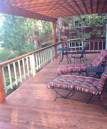 This impeccable home has it all. It boasts a lovely lake view, privacy, and is just yards from the private homeowner's lake access points. This move-in ready home has a woodstove in each great room which creates a beautiful ambiance. The large great room with vaulted cedar ceilings, central heat offers comfortable living year round. It is on a private corner lot with RV pad and plenty of room to park a boat. The newer features continue with carpet, paint and a newly refinished deck for a peaceful and quiet retreat on Big Springs Road.