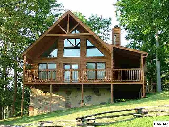 Charming 1 bedroom, 1 bath, fully furnished, wheel chair accessible, authentic log cabin that sleeps 6 on 2 queen size beds and 1 sleeper sofa. Cabin rents as a 2 bedroom with a 1 bedroom septic permit. The bedroom is located on the main level and there is a bedroom set on an open loft. From the large paved parking area, stroll onto the expansive wrap around porch and enter into the spacious great room with dramatic cathedral ceiling, wall of glass windows, wood floors and stacked stone wood bur