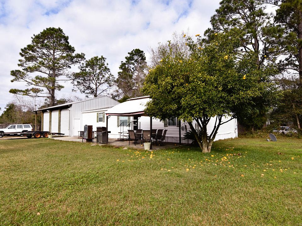 This move-in ready, well maintained home is centrally located in Panama City, 30 mins. to the beach and 30 mins. to Tyndall AFB. Featuring 3 bedrooms and 2 baths, this home has been updated with new top-of-the-line tile and carpet, security system and water softener. There is a large workshop/garage (32 x 29) with 3 roll up bay doors (10 x 9.6) with extra storage (22 x 5) that was built in 2010 (metal roof) and an attached carport. Perfect for your RV, boat, cars, etc. Enjoy family cookouts or just relaxing on the patio (awning and patio furniture convey). There are also 2 mature citrus trees on the property. All sizes and information are approximate, buyer should verify if important.