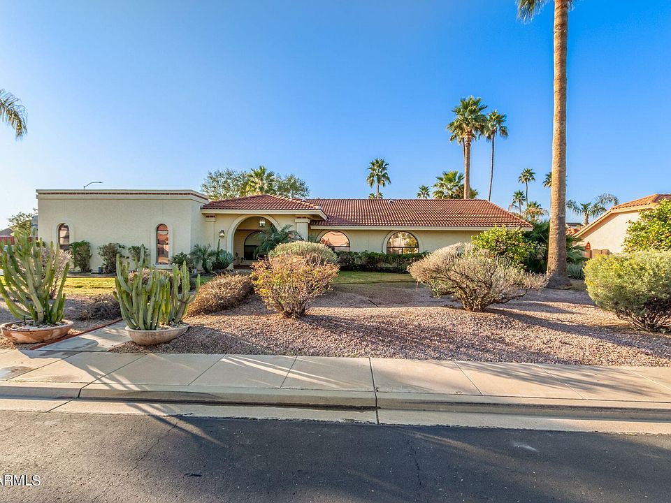 Rare single level home in the coveted custom home Groves area of North Mesa! The home is on over a 1/3 acre corner lot, NO HOA, RV gate with a huge pad to park all of your toys, a beautifully landscaped yard with a large diving pool - A perfect way to enjoy those Arizona days! There are 5 sweet naval orange trees, an oversized 2 car garage with extra storage room, a water softener and whole house vacuum! The living room features a stunning brick accent wall with a fireplace, there is formal dining as well as an eat-in kitchen with a breakfast bar and granite countertops, multiple french doors leading out to the backyard and a wet bar that is concealed behind cabinets. The quiet and lush backyard features an extended covered patio, private pool, mature trees & plants, and a quaint fountain