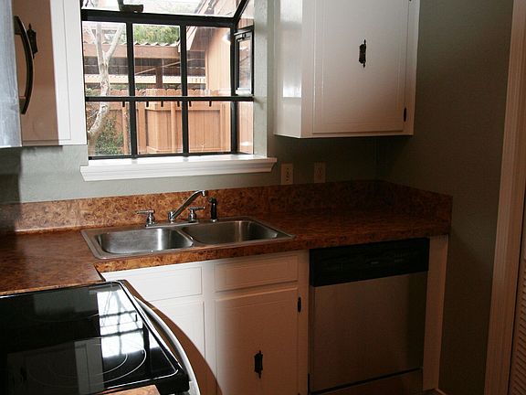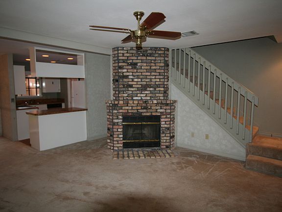 Newer stainless steel appliances (with exception of the full size fridge which is white), 1/2 bath is on first floor, wood burning fireplace, & custom paint. The two bedrooms are located upstairs. The master bedroom features skylights, a large closet, and it's own balcony. Upstairs bathroom is a jack and jill with double sinks and tub/shower combo. Home comes with 2 covered parking spaces and small exterior storage area. Community pool and Tennis courts. No pets please.