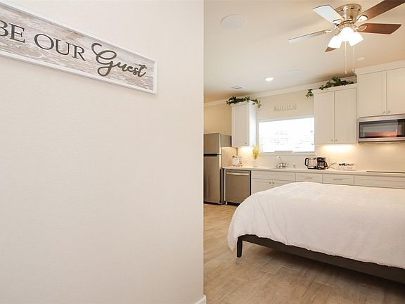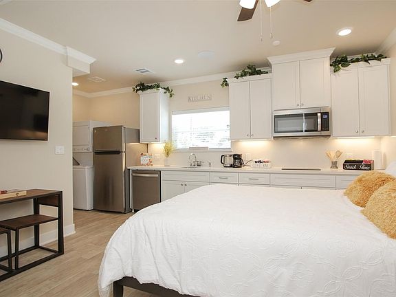 Experience elevated living in this elegantly furnished Studio-Suite with quartz counters, custom-lit cabinets, full kitchen appliances, kitchenware, dual cooktop, full size microwave, dishwasher, NO carpet, smart-TV, W&D, walk-in closet, Bluetooth enabled ceiling speakers ready to be connected to the TV or your phone's favorite playlist, dedicated Internet, and Alarm. Prime Location: less than 3 miles from Texas Medical Center, close to Downtown, stadiums, malls, groceries, and museums. Don't wait, schedule your showing before this rare find is gone!