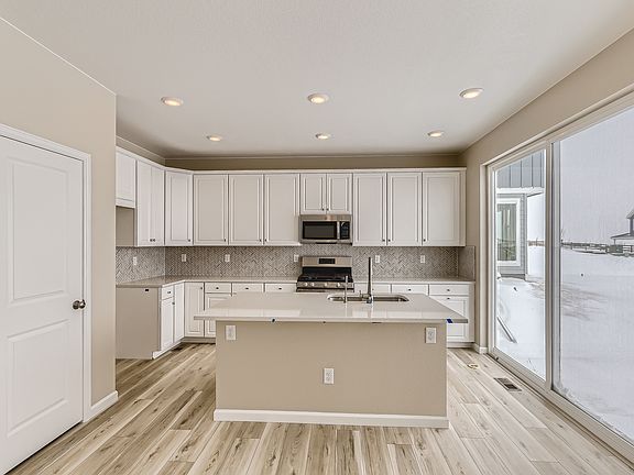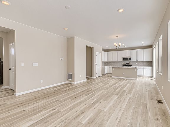 REPRESENTATIVE PHOTOS ADDED. The Gray floorplan at Aurora Highlands Town Collection is a grand two-story modern concept design. A spacious foyer welcomes you into the open-concept gathering, dining, and kitchen space, complete with an eat-in island, pantry, powder room, and functional entry off the 2-car garage. Upstairs you'll find two secondary bedrooms each with a walk-in closet, convenient laundry, full bath, and the primary suite with a spacious 4-piece bath and walk-in closet. Structural options include: Full unfinished basement, 14 seer Air conditioning, primary bath configuration 3, outdoor living patio and upgraded rail and spindle sytles.