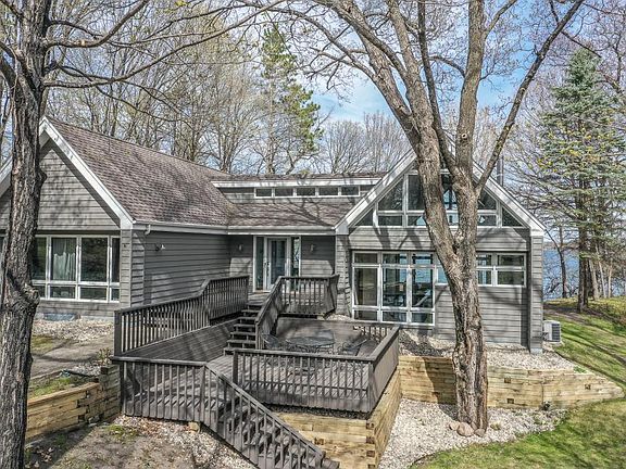 Imagine yourself coming home to this fabulous view of Lake Ida! This lot has great elevation to the water and privacy too. A very unique style to the home with a 2 level great room all open to a striking kitchen that has a 5'x6'8" granite center island. Cooking will be a pleasure in this kitchen since you have views of the lake plus the backyard. This home has a floor to ceiling fireplace, Marvin windows, hardwood floors, and a 32x30 heated garage. Numerous decks front and back all recently stained. Be sure to check out the very lower level where you can use your imagination as to finishing it.