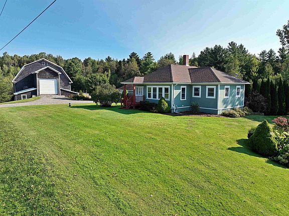 Originally a dairy farm, this lovely 106-acre property has been converted into an equestrian facility complete with a riding ring, fenced pasture, hayfields, and miles of trails. Instead of a large, old farmhouse in need of repair, you’ll have a comfortable, meticulous, move-in ready home boasting new windows, flooring, paint, and a new boiler. At the heart of the house is an updated central kitchen, featuring stainless appliances and granite counters, with a very spacious dining room adjacent and open to a cozy, sunlit sitting area at the front of the house. At the back of the house overlooking the backyard and pond is a gorgeous living room with cathedral wood-clad ceiling and a Harman glass-front pellet stove. Two bedrooms are located on the north side of the house and share the beautifully renovated bath boasting dual sinks, a clawfoot tub, and separate shower. The partially finished walk-out lower level includes a TV/rec room, while the other side offers an abundance of storage along with the laundry area. Outdoor living spaces include a covered front porch, large side deck, and a brick patio at the rear of the house surrounded by perennials and tiered planting beds. The 4-5 stall high-drive barn is ready for horses or other livestock. The land is comprised of about 40 acres of open field, pasture, and lawn, with the balance being wooded. Main road frontage would work well for a farmstand or at-home business. All of this, plus you’re only 10 miles from Jay Peak.