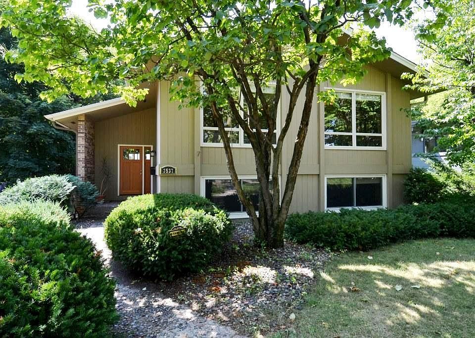 Late Mid-Century Modern home designed by Minneapolis architect Lyle Landstrom one block off the south end of Cedar Lake and across from Chowen Triangle. Sunny and spacious with open flowing floor plan. Large picture windows in living and dining rooms look out over the Triangle. Beautiful inlaid hardwood floors, updated kitchen and baths. The full walk-out lower level is spacious and light filled and features a huge family room that walks out to an impressive bluestone patio and lovely gardens. Unique neighborhood of beautiful and distinctive homes is a quiet oasis surrounded by all the vibrancy and amenities of the Chain of Lakes and Uptown. One block to beach, walking and biking trails. Hard to find 3 car garage. Check out the photos and captions to see all this unique home has to offer.
