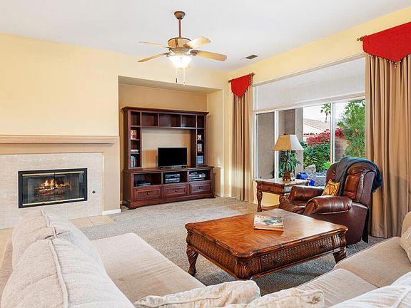 Experience desert living at its finest in this stunning floor plan located in the premier 55+ community of Sun City Palm Desert. This beautifully maintained, move-in-ready home offers 2 bedrooms, 2 bathrooms, a separate den/office, and approximately 2,473 sq. ft. of spacious, light-filled living.Designed for both comfort and sophistication, the open layout features elegant interiors and effortless indoor/outdoor flow. The chef's kitchen opens seamlessly to the family room and casual dining area, creating the perfect setting for everyday living or entertaining friends and family. The generous primary suite serves as a private retreat with a spa-like bathroom and ample closet space, while the guest room provides comfort and versatility for visitors. A separate den/home office adds even more flexibility for work, hobbies, or media. Step outside and enjoy the beautifully landscaped grounds and full covered patio, ideal for taking in the sunshine and mountain breezes on your expansive 10,019 sq. ft. lot. Mature landscaping enhances privacy and creates a serene outdoor environment ideal for relaxation. Located within the gates of Sun City Palm Desert--widely regarded as the best 55+ community in the valley--residents enjoy world-class amenities including championship golf courses, tennis and pickleball courts, multiple fitness centers, swimming pools and spas, on-site restaurants, entertainment venues, dog parks, and an endless array of clubs and social activities. All of this comes with remarkably low HOA dues and the huge benefit of low-cost Imperial Irrigation District (IID) electricity. Just minutes from the area's top attractions--including El Paseo shopping and dining, the Indian Wells Tennis Garden, PGA West, and the Coachella and Stagecoach festival grounds--this home offers unmatched convenience in a truly resort-style setting. A rare, move-in-ready opportunity in one of the desert's most sought-after active adult communities!