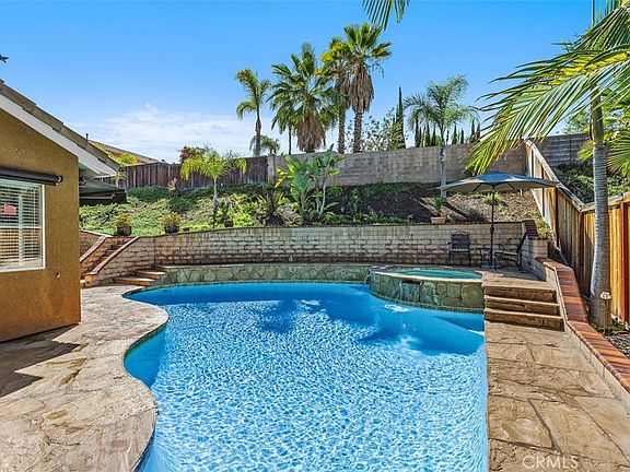 A rare opportunity in Corona’s Mountain Gate community! A beautiful single-level pool home with a three-car garage, remodeled interiors, and completed inspections that came back excellent. From the moment you arrive on the wide, tree-lined streets and pulling up to the oversized driveway, you'll see the pride of ownership is clear. Inside, enjoy high ceilings, a two-way fireplace, slate/tile flooring, and French doors opening to outdoor spaces ideal for morning coffee or evening unwinding. The remodeled kitchen features quartz counters, breakfast bar, and a bright nook overlooking the backyard. The primary suite offers large bath, plus a walk-in closet, additional full-length closet, and French Doors out to the large yard. Two secondary bedrooms and a full bath provide flexibility for guests or office space. The private backyard is the highlight: a sparkling pool and spa, built-in BBQ, firepit, grassy area and a hillside ready for fruit trees.Homes like this.... single-story, pool, upgraded, and move-in ready before the holidays — rarely come available. This one is ready for new memories.