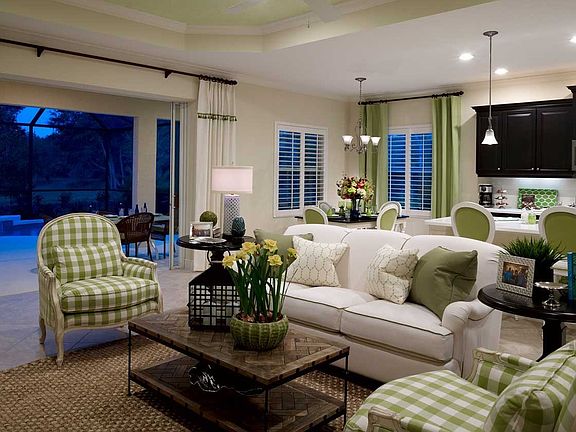 1,946sf, 3 bedrooms, den, 2 baths, 2-car garage.. Upgraded kitchen with raised panel gray cabinets, quartz counters and stainless steel appliances, split-pattern tile floors, tray ceilings with crown molding, custom pool with waterfall & lake view.