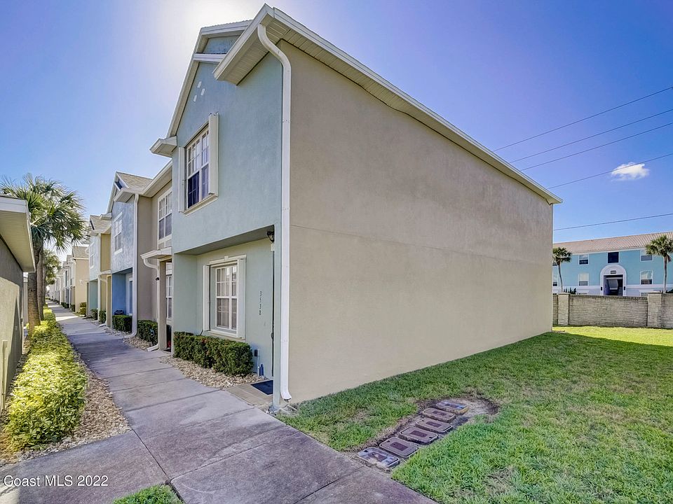 Beachside Townhome in the highly desirable Indialantic community of Ocean Village – less than a 10-minute walk to the BEACH! 1,614 Sq. Ft (larger 2-BR model) end-unit Townhome featuring Double Main Suites (upstairs) with private bathroom in each Suite and half bath downstairs. Open first floor plan with laundry room and included washer/ dryer; above-ground hot tub/ spa in lanai; carpet in common living areas (downstairs, stairs, upstairs landings) less than 2-years; water Heater less than 3 years old; A/C less than 7 years; accordion Hurricane Shutters; roof and replacement included with the HOA dues. Gated community across the street from the beach with community pool, clubhouse, playground, tennis & basketball courts. 18 min to Patrick Space Force Base, 38 min to Port Canaveral.