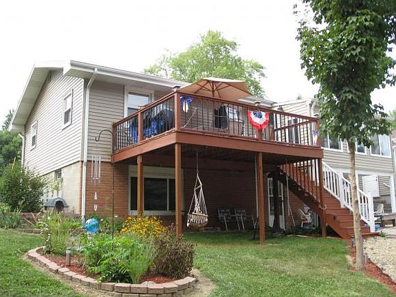 HOME, SWEET LAKE HOME! A lifestyle of fun and relaxation awaits you in this spacious, remodeled lakefront home. Enjoy family dinners in the eat-in kitchen with rich cherry cabinetry and parquet floors. The main level is highlighted by beautiful hadrwood floors. The cheery sunroom features lake views and leads to a large party deck. A family room, rec room, fourth bedroom and full bath complete the lower level. The lakefront features a stone and concrete terrace, steel sea wall, attractive block retaining walls, and two docks with electric lifts (2010). The two car garage has 8' tall doors and was rebuilt in 2012. Schedule your private showing and let's get the party started! Reserved: flag pole by lake.