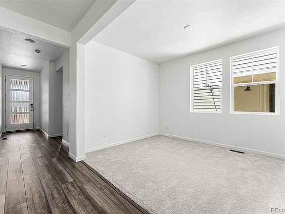 MLS#8901088 REPRESENTATIVE PHOTOS ADDED. Built by Taylor Morrison, Ready Now. The Sand Dune paired home-design in The Aurora Highlands Landmark Collection is sure to impress! Revel in the spaciousness of 2 bedrooms and an office on the main floor, adorned with abundant windows and an expansive outdoor living area. Delight in the luminous gourmet kitchen, dining, and great room, designed to capture the essence of Colorado living, complemented by a covered outdoor sanctuary. The flex room offers versatility, ideal for remote work, crafting, or personal fitness pursuits. Unwind in the luxurious primary suite, tucked towards the rear of the home, featuring a generous walk-in closet and a lavish 4-piece bath. For guests or loved ones, the secluded secondary bedroom and full bath offer tranquility and comfort. Structural options include: modern exterior elevation with front porch, 12' sliding glass door, air conditioning, main floor study/dining room/den.