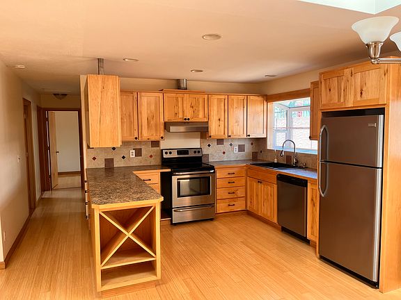 Freshly painted home. Lot's of natural light. Two bedrooms have carpet. The 3rd bedroom and the rest of the home has bamboo flooring except for the bathroom. Custom wood kitchen cabinets that are bright and beautiful. Enclosed backyard with a covered patio and fire pit in the yard. There is also a large storage shed in the backyard. Insulated double car garage. Located in a quiet neighborhood in Pacific City. Owner pays for water and garbage service. Renter pays balance of water and sewer for monthly bill exceeding $105. Renter is responsible for electricity. Renter is responsible for lawn maintenance. There is a lawn mower provided. Strictly, no smoking on premises. Lease of one year is required. A small pet under 40lbs is negotiable.