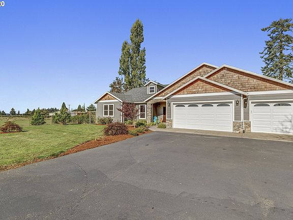 Beautiful 3,158sqft Craftsman Ranch home on 6.56 level acres! This home features gorgeous stone work, a grand master suite w/ shower & jetted tub. Slate, stainless steel appl.,granite, and hardwoods throughout! Large upper bonus/family room, 220v 43x59 shop w/ 12x43 RV bay, Blt-in 22KW generator, loafing shed w/ 4stalls & tackroom. Fenced garden, 10x20 TLshed, fruit trees, & green house! Room for animals! This elegant home & property has so much to offer, and the sunsets are amazing!