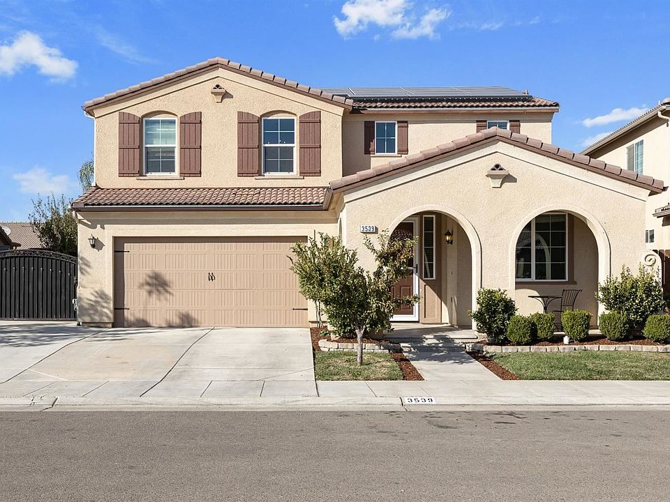 Back on the Market! Welcome to this gorgeous 2016 Wilson home in the Regent Park subdivision of the Loma Vista Community! Featuring 5 bedrooms, 3 bathrooms, a sparkling pool, RV Parking, Solar, an outdoor built-in BBQ island, garden beds, fruit trees, and much more!Downstairs features an open concept with the large living room, dining area, kitchen, and workspace.The kitchen features granite countertops, stainless steel appliances, breakfast bar, a gas stove, and two pantries!Also downstairs is an isolated bedroom and full bathroom. The other four bedrooms and laundry room are upstairs. The swimming pool features one waterfall and multi-colored lights with remote control. The two car garage features a nice work area with built-in cabinets and additional storage units. The home also has a Tesla solar system with a fixed rate lease and pigeon guard already installed. Close to neighborhood parks, walking-trails, and Clovis East High School!Call today for a private showing to see this beautiful home!