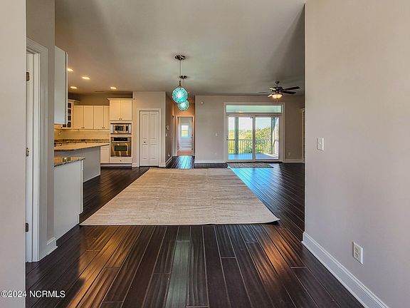 Welcome to 3539 Island Drive, a stunning sound-front home tucked away in a serene setting in North Topsail Beach. Surrounded by beautifully maintained plants and shrubs, this home offers a peaceful retreat just a block from the beach. Its prime location provides easy access to nearby Surf City and is only a short drive to Wilmington and Jacksonville, making it both convenient and idyllic getaway. The exquisite residence features 4 bedrooms and 3.5 baths, designed for both comfort and style. The spacious open floor plan includes a welcoming living room that seamlessly opens to a charming screened-in porch, perfect for enjoying the coastal breeze. Additional amenities include a 2 car garage, an under- house storage room, and an outdoor shower, adding to the homes practicality and appeal. Embrace the best of coastal living where beauty, convenience and tranquility come together to create the perfect home!