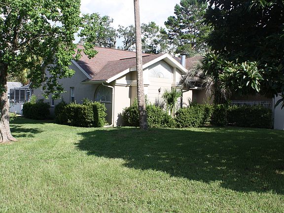 Beautiful 3 bedroom 2 bath split plan home with vaulted ceilings and open floor plan on large corner lot with lush green grass, palm tress, and azaleas. The living room boasts of a large wood burning fireplace and vaulted ceilings. The living room and dining room both have large sliding glass doors that look out onto the lanai and pool. The master suite is substantial enough for a king sized bed and all your furniture. There is 2 large walk in closets and a large master bathroom that has double sinks, stand alone shower and jetted bathtub. There is pool and lanai access from the master suite through large glass sliding doors. With 1754 sq ft of spacious living area, an over sized 3 car garage, and a generous lanai, totaling over 2900 sq ft you will have room for your family and all your toys.