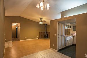 Clean, move-in-ready home with 3 bedrooms and 2 bathrooms located in a great neighborhood. This bright home features, a wonderful open floor plan, vaulted ceilings, a great kitchen with plenty of cupboard space, a large living room with a nice woodstove fireplace, a family room, a spacious master suite, an attached 2 car garage and trees around the home providing convenient privacy.