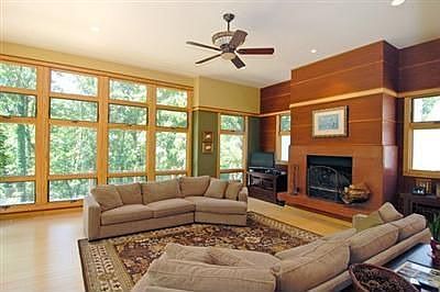 Outstanding contemporary Prairie style in coveted Duneland Beach; new in 2006. Great room window wall with seasonal lake views, massive hearth surrounded by mahogany finish, soaring ceilings. Custom kitchen focused on granite center island, extensive cabinetry, stainless steel appliances. Master suite with private balcony, walk-in closet, generous bath finished in travertine, and fine fixtures. Four bedrooms, three full baths, attached garage. Extensive custom accents including maple doors and tempered glass railings, bamboo and radiant heat floors, carefree cedar exterior, extensive decks.