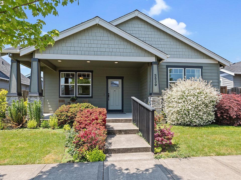 Desirable one-level cottage style home in Chegwyn Village. Enjoy this delightful neighborhood while sitting on the large front porch. Open floor plan home has been well maintained and the vaulted ceilings provide a spacious feeling while still having a sense of comfort and coziness. Kitchen has ample space and storage with island, cooking area, and additional cupboards and countertops. Owner's suite is complete with vaulted ceilings, walk in closet along and bathroom with double sinks and walk-in shower. Laundry room is conveniently located just off kitchen and garage entrance. Garage car entry is in back of house with access from community alley. Fenced backyard has plenty of room for entertaining and gardening. All appliances included in sale.