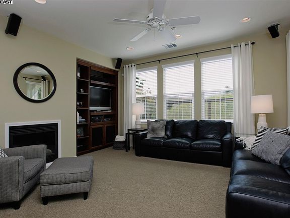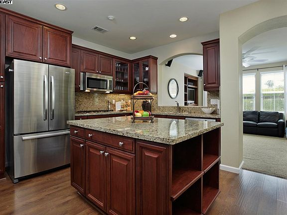 Backs to open space! Beautifully upgraded home features a rich dark wood kitchen with center island, slab granite counters and upgraded appliances. Cozy family room with built-in media center and fireplace opens to the lovely professionally landscaped yard. Spacious bedrooms and upstairs office/nook