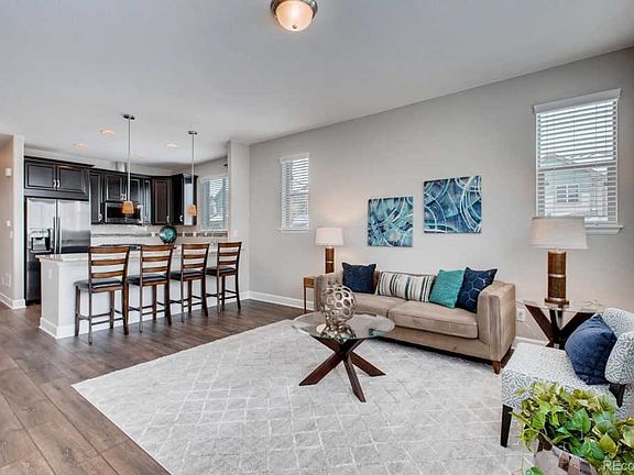 Brand new townhome w/ Main Floor Master Suite, attached garage, huge walkout basement & mountain views! End unit Aspen model at Painted Ridge Townhomes features 2 bedrooms on main floor. Main Floor Master Suite has 5 piece bath & large walk in closet, while other main floor bedroom also has attached full bathroom & functions as a 2nd master or guest bedroom! Open floor plan as family room w/fireplace flows into kitchen that features quartz counters, stainless appliances & tons of counter/cabinet space. Soft close cabinets/drawers. Main floor laundry. Upper floor has vaulted ceilings, large loft, bedroom & bathroom. Composite deck, concrete patio. Low HOA includes snow & trash removal, landscaping, exterior maintenance w/ roof! In Cherry Creek School District. Close to DIA airport, E-470, shopping, schools, parks. Brand new construction, be the 1st to live in this unit! This is a new build community, photos in the MLS listing are not necessarily of this particular unit.