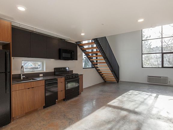 18' H ceilings. Awesome mezzanine bedroom with extra space for home office. Huge windows. Landlord pays trash and recycling. Tenant pays all other utilities.