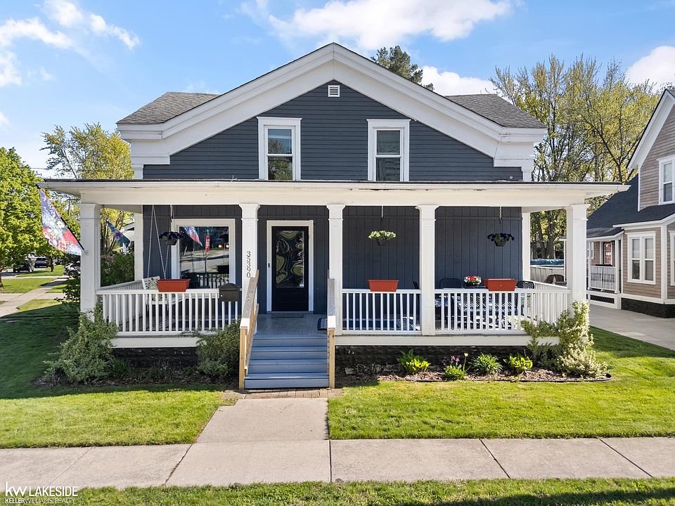 Discover this beautifully updated 1910 farmhouse located in the charming heart of Richmond, MI. This stunning home offers a perfect blend of historic character and modern amenities, making it an ideal choice for families and those who appreciate timeless design. Offering 5 spacious bedrooms and 2.5 well-appointed bathrooms, the residence provides ample space for everyone. With approximately 2,400 square feet of living space, the open concept layout creates a warm and inviting atmosphere, perfect for both everyday living and entertaining guests. The first-floor master suite is a true retreat, featuring a private updated ensuite bathroom with dual sinks and separate shower and tub. Upstairs features 4 additional bedrooms and a full updated bathroom. Step outside onto the charming front porch, where you can relax and enjoy a cup of coffee. The property also includes a large 2-car garage and a large workshop barn, providing plenty of room for vehicles and storage. Combining the best of historic charm with modern comfort and functionality, this updated farmhouse is truly a rare find in Richmond, MI. Don’t miss the opportunity to make this exceptional property your new home! Schedule a showing today! (NEW tankless HWT 2020, New electrical panel & generator hookup 2023) **EXCLUSIONS INCLUDE*Guitar mounts, Porch swing, cameras including doorbell, networking equipment and access points.