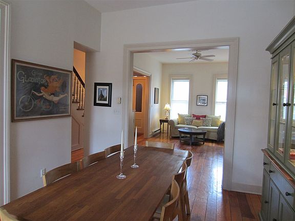Sophisticated & impeccable brick townhouse filled w/ light. Architectural details: Marble fireplace, medallions, built-ins, hdwd fls, newel post & custom railing. Artistic Kitchen w/ hammered tin doors, wood beams & tile. Spa bath w/ lg skylight & W/D closet. Soundproof windows, AC, private landscaped courtyard, deck & horse walk. BASEMENT APT: $700- updated and in lovely condition. Walkability. Single file pking behind garden on Jefferson. The superior condition not to be missed.
