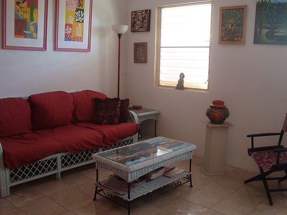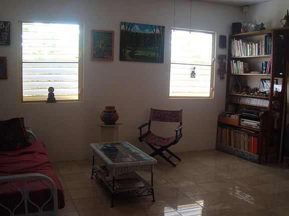 Charming house in the lush and quiet mountains, 20 minutes drive from the University of Mayaguez. The house has 3 bedrooms, a living room, dining room, big bathroom, office, terrace and laundry terrace. In the flat, fenced garden is a separate garage/studio, with a 400 gallon reserve water tank. House comes with stove, fridge and washing machine. by appointment only