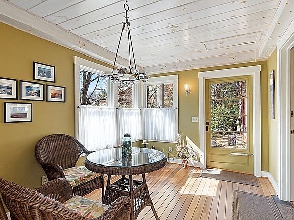 Delightful Country Farmhouse exudes warmth and charm, so much beautiful detail both inside and out. Featuring bright Country kitchen w/ Vermont soapstone counters, double sink, hand-split rock backsplash, mahogany HW flooring, & stainless appliances. The open, central dining room has birch flooring, bar top counter w/ storage, and provides a focal point for the main level. Office/Den room features maple flooring & custom built-ins. Cozy Living room w/brick fireplace, Shaker crown molding & beaded wainscoting. The enclosed front porch is perfect for relaxing and taking in plenty of sunlight. Upstairs are 4 bedrooms w/ maple flooring, various detail/built-in features. A full updated bath w/tile shower, custom vanity, and laundry area. Exterior covered porch/deck provides a cool shade and space for outdoor entertaining. Property has storage shed and detached 1-car garage. Open House SAT & SUN 1-3. Calling for offers MON 5/3 @ 6:00pm.