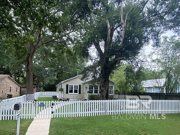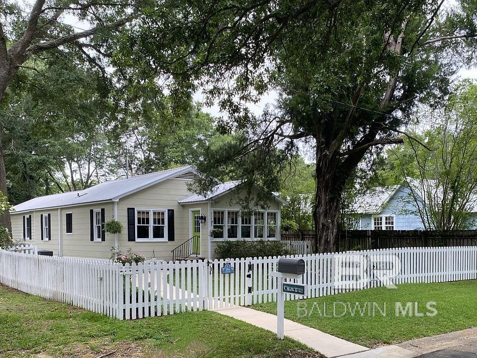 Are you looking for an adorable, updated, TRUE Fairhope cottage that boasts beautiful hardwood floors, a quaint white picket fence, a private deck and loads of charm? Then you'll Fall in Love with Oak Leaf! Sitting on a fabulous lot with gorgeous azaleas, camellias and beautiful mature trees, this cottage is only a few blocks from all that downtown Fairhope has to offer (dining, shopping, Live at Five concerts, recreation, etc.) and less than a mile from those Gorgeous Bay Sunsets. Prime Location! Lots of updates including kitchen and baths, metal roof, irrigation system, fence, and parking pad. The detached garage boasts an office area as well as plenty of space for your golf cart or workshop. Make this precious home yours today! Buyer to verify all information during due diligence.
