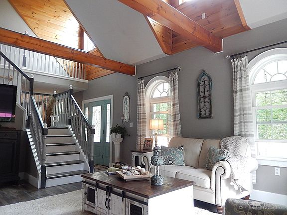 LIGHT FILLED, 2000+ sq. ft. Contemporary Colonial has 10 rooms, 3 bedrooms, 2 baths & 3 SURVEYED ACRES. LOVE THIS HOME! Amenities include spacious living room with cathedral ceiling, custom kitchen with SS appliances including double oven, gas range, 2 tiled baths with double vanities, 6 zone HWBB/oil radiant heat in slab, tile and laminate flooring, 2021 central vacuum, 2 Quadra-Fire, Mount Vernon pellet stoves, 10' X 44' front porch,, 12' X 20' patio & 12' X 28' Amish shed. Oversized windows, Palladian windows, 2 sets of interior French doors & 2 sets of atrium doors make this a bright and airy home! Please visit today-you will be glad you did!