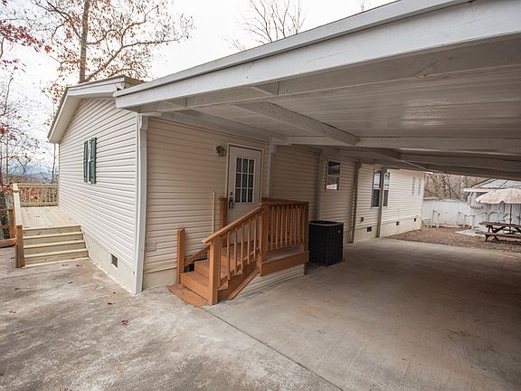Private and Tranquil Setting on Unrestricted .97 of an Acre --- Less than 5 miles from Downtown Franklin. 2007 Norris Doublewide Manufactured home. Kick back and relax on the spacious Covered Porch while enjoying Winter Views. New Metal Roof, Some New Decking and freshly pressure washed Sept./Oct. 2023. Spacious Three Bedroom, Two Bath home with Split Floor Plan. Stay Toasty in front of the Stone, Gas Log Fireplace that adjoins the Kitchen & DR. Primary Suite w/Large Closet, Private Bath w/Garden Tub, Separate Shower, Double Sinks. Big Kitchen has large Work Island with Breakfast Bar and tons of storage. Attached Carport for element free loading and unloading. Two Storage Buildings, one is powered w/a Workbench. Concrete Block Foundation, should qualify for Conventional, VA, FHA and USDA financing. Buyers Agent to confirm with Lender. Owner did not have Internet. There was Direct TV at one time, now disconnected. Low Maintenance yard....no grass to mow, just some weedeating. With a bit of "Sprucing Up" this would be a Showplace. Great for a Primary Residence or Vacation Home. Mobile Home Title will be retired at closing. Home being SOLD AS IS.