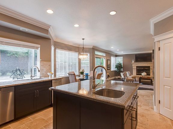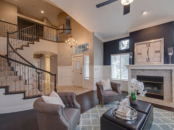 This stunningly detailed home features an open and bright living and formal dining area with high ceilings, crown molding and hardwood flooring throughout. The updated eat-in kitchen features travertine tile and is combined with a family room, grand fireplace and wet bar. One bedroom, full bath and half bath are located on the first floor along with a laundry room and plenty of storage space. Upstairs, the luxurious master suite features a gas fireplace, oversized shower, separate soaking tub and a large walk-in closet.