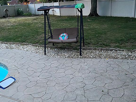 Inground saltwater pool, stamped concrete, New roof, new central air, vinyl privacy fence