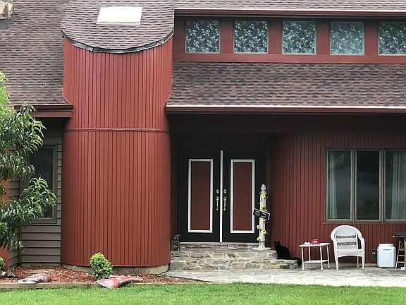 Complete info: This spacious custom contemporary boasts numerous ammenities. Featuring an open and airy floor plan, cathedral ceilings, new kitchen w/ maple cabinetry and granite countertops, two story stone gas fireplace (two sided), 2nd story catwalk, walkout basement and huge rear deck. This unique home is situated on large cul-de-sac lot with abundant privacy.